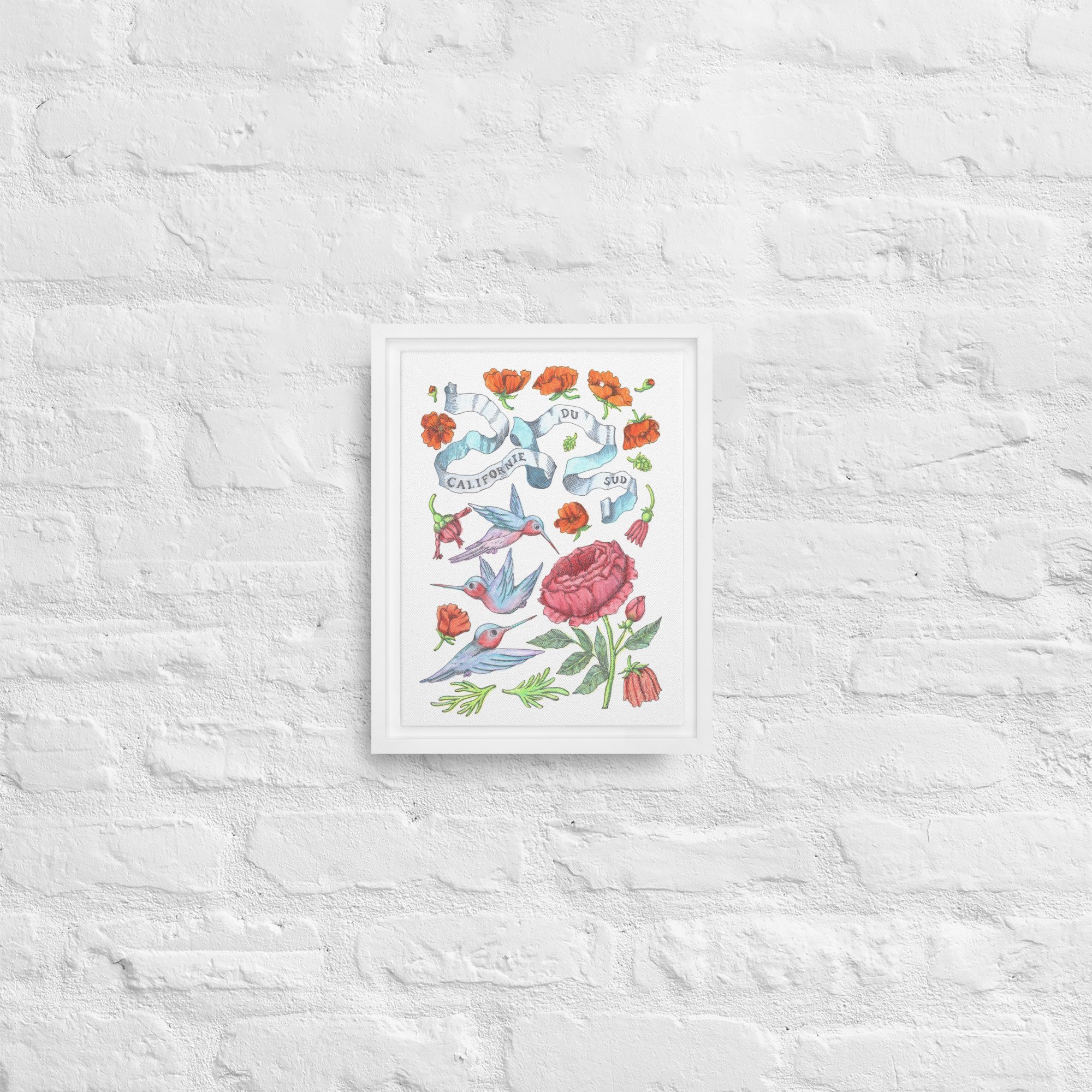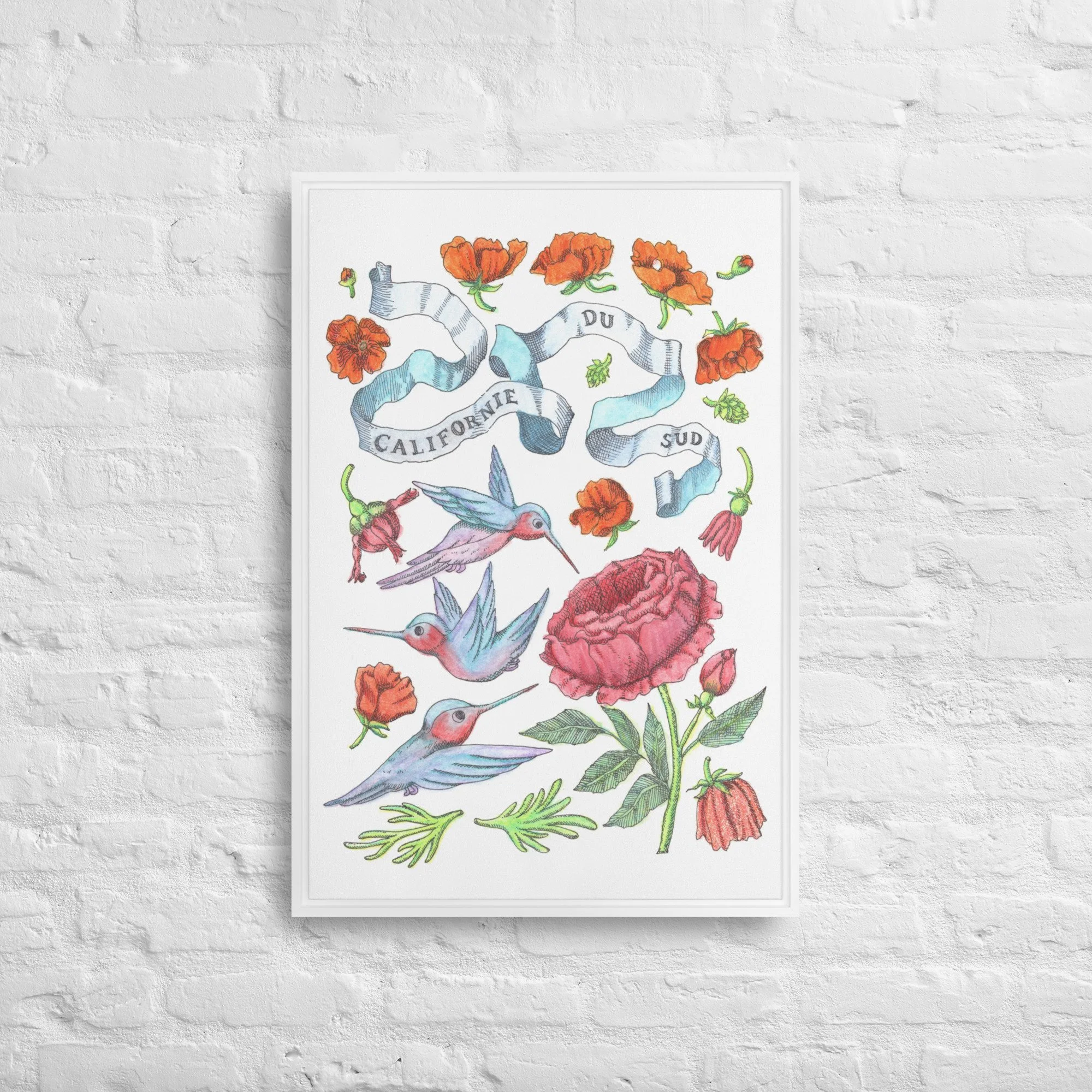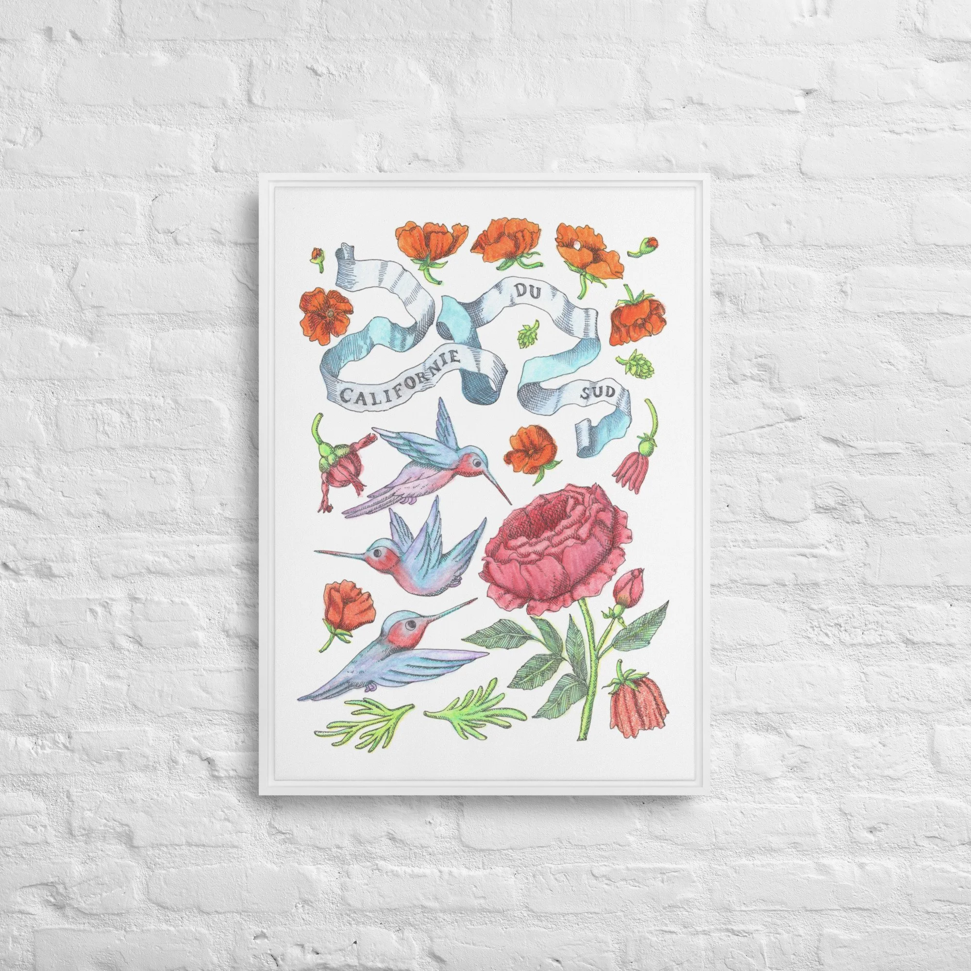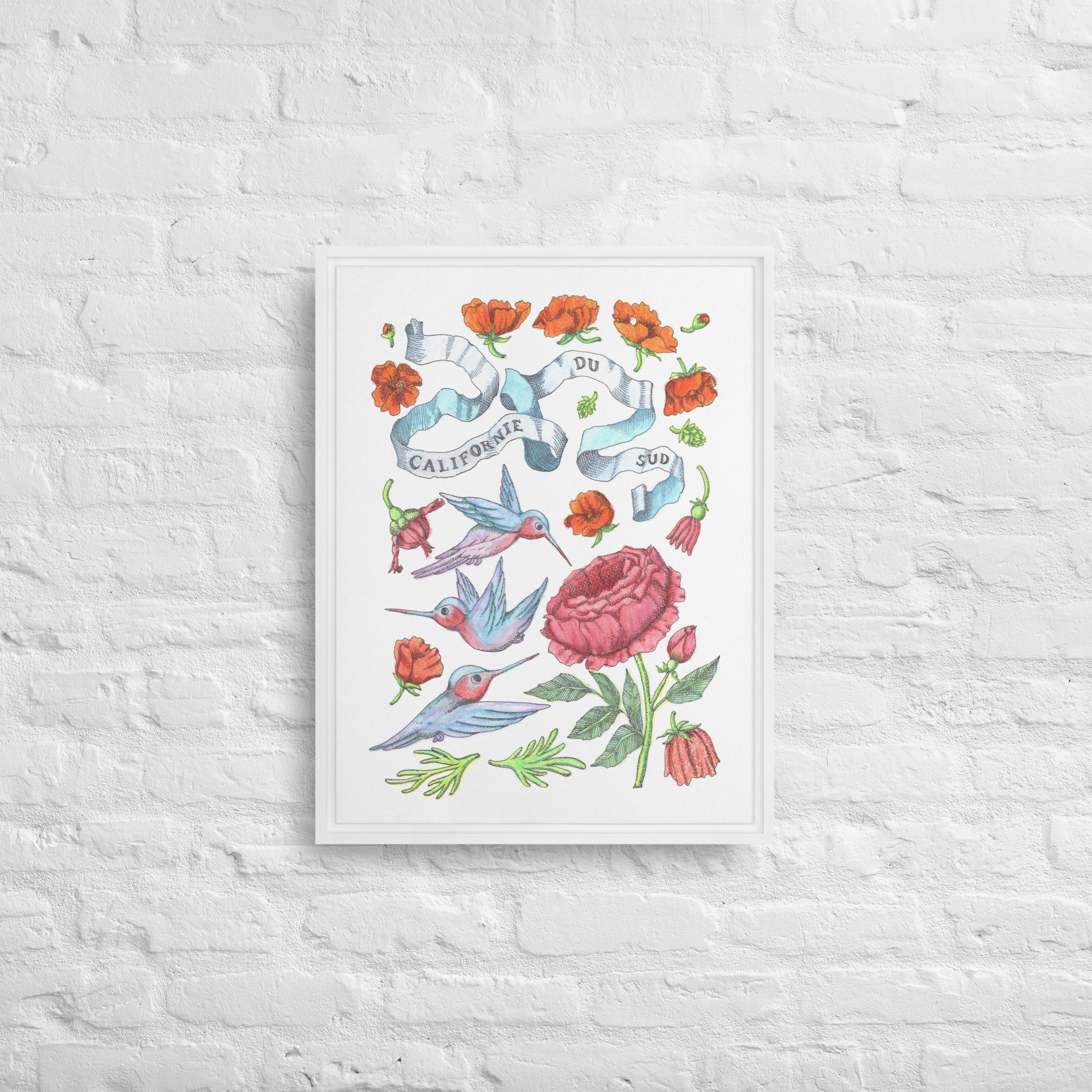 Inspired by bright days in Palm Springs, California—hummingbirds hovering among California orange poppies under endless blue skies. Each piece features hand-drawn botanical motifs arranged into delicate patterns that capture the golden light and desert blooms of Southern California.