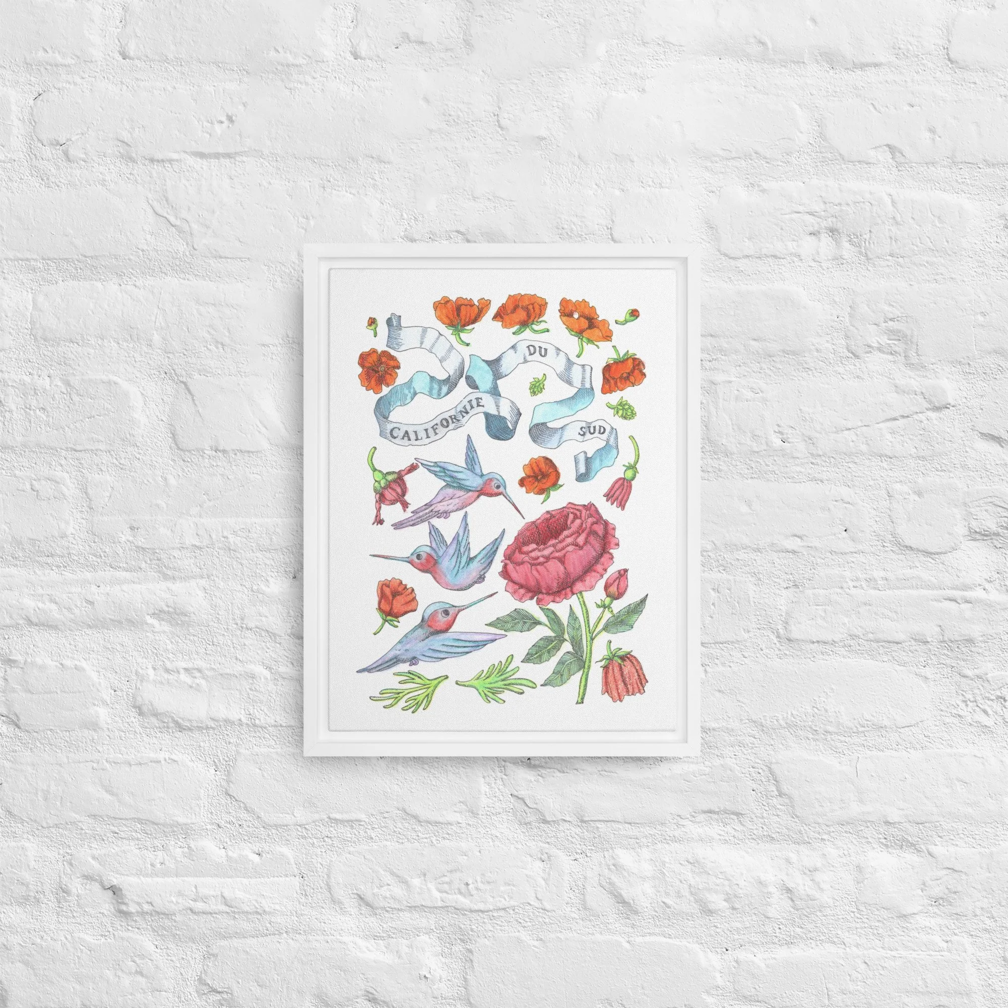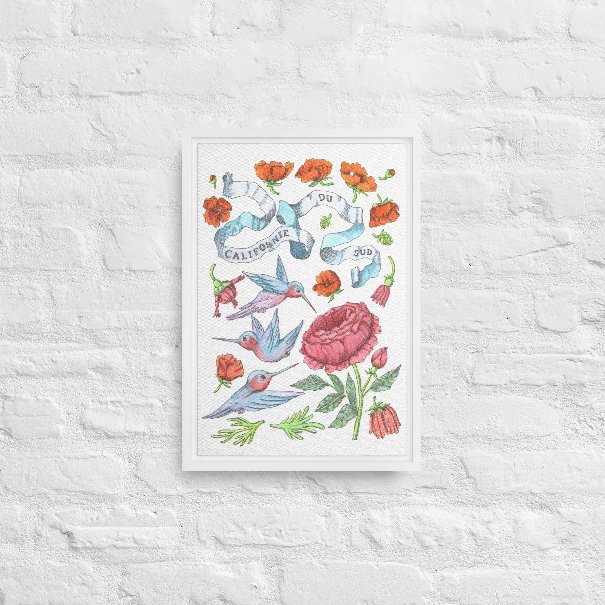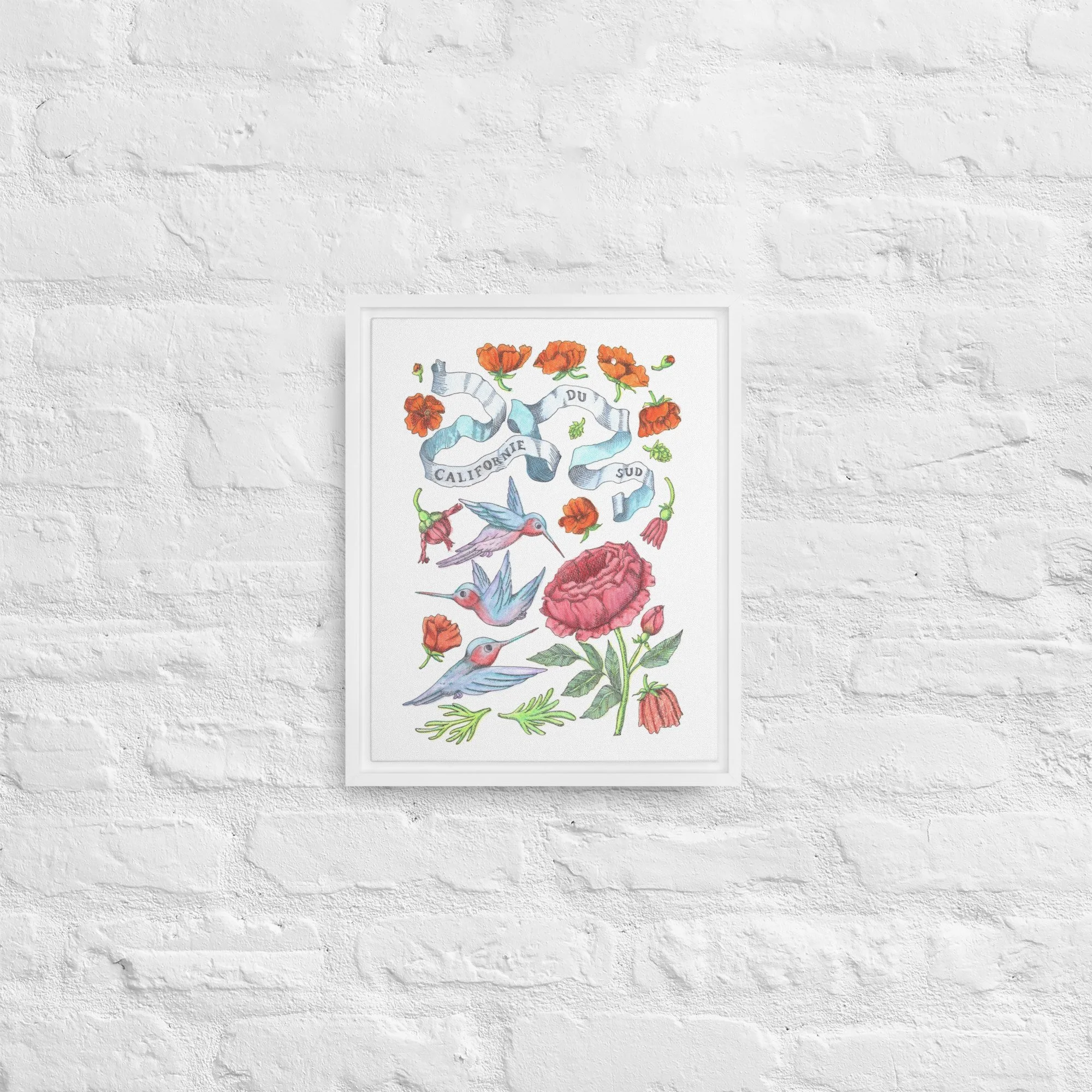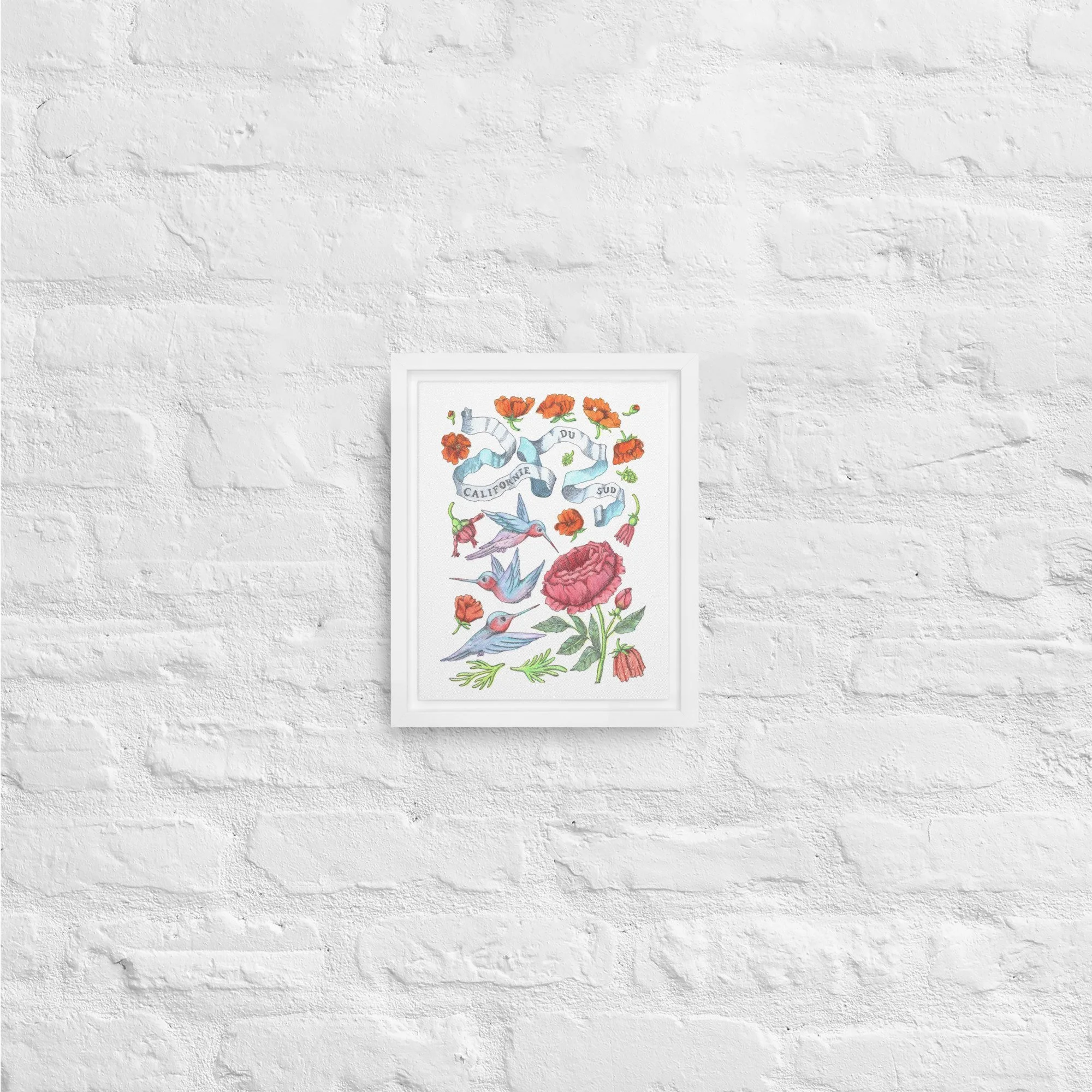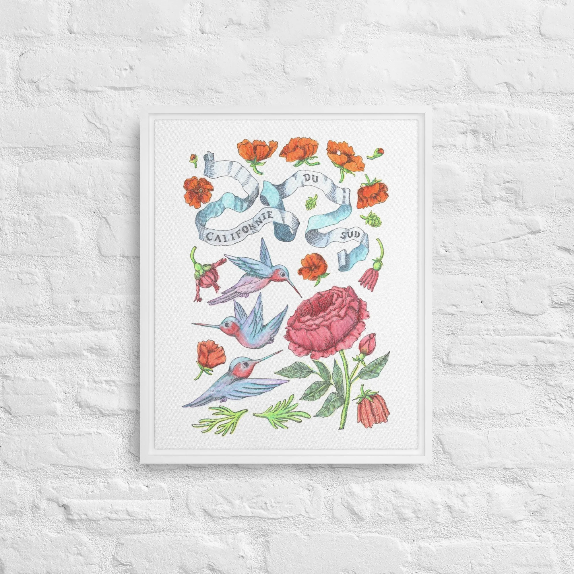 Inspired by bright days in Palm Springs, California—hummingbirds hovering among California orange poppies under endless blue skies. Each piece features hand-drawn botanical motifs arranged into delicate patterns that capture the golden light and desert blooms of Southern California.